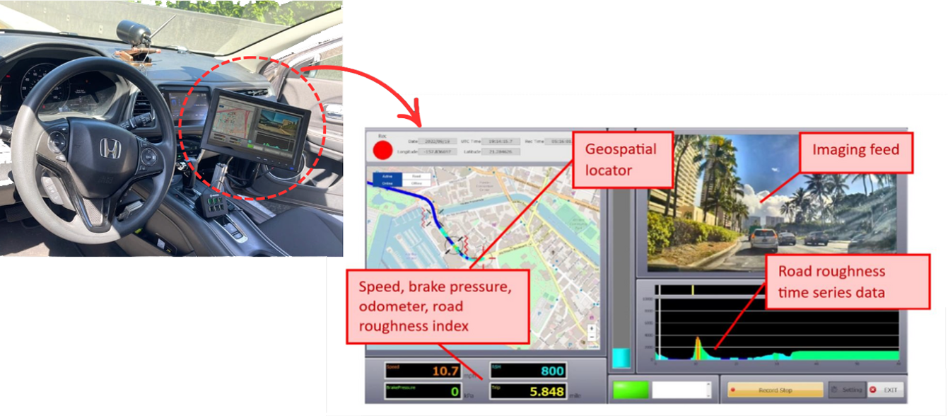 This road roughness data (ride quality), coupled with geolocation and speed, can be used to effectively map the roughness anywhere the vehicle travels. The SRMCV is equipped with a high-resolution dashboard camera integrated into the monitoring system allowing it to log video or photos that are geolocated and transmitted with the road condition data in near real-time.